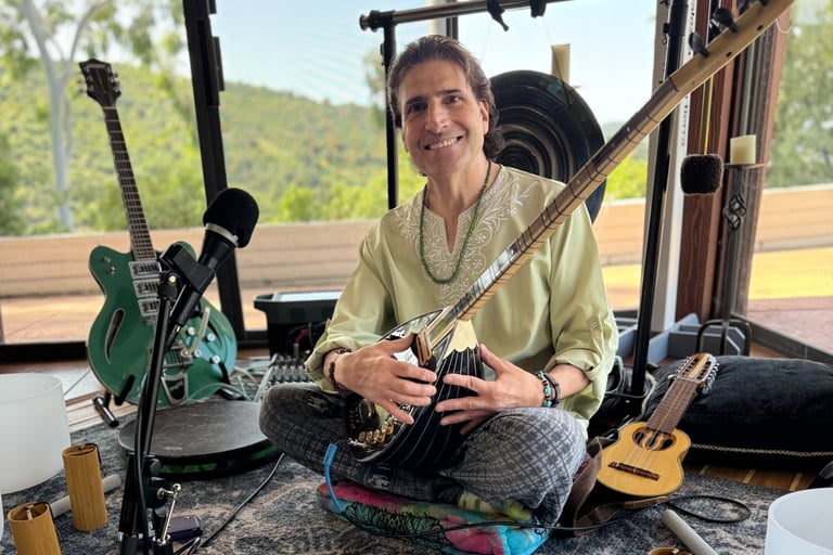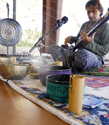 In 2017 and 18, he began offering this sound meditation for patients at recovery centers in Malibu. Offering them until he and his family were evacuated from the 2018 Malibu Fire, eventually relocating to Santa Barbara.